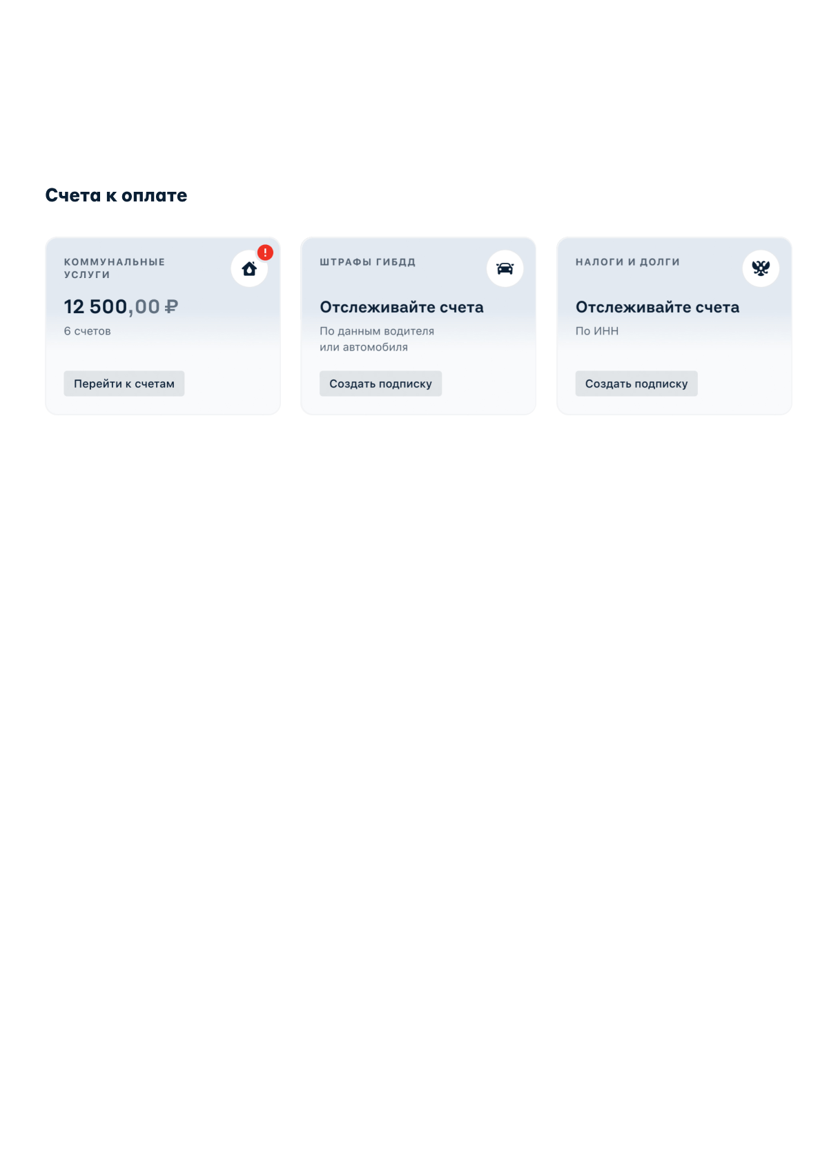 Чтобы не пропустить входящий счёт на оплату, оформите подписку. Как только появится новый штраф ГИБДД или счёт за коммуналку, мы тут же предупредим об этом.