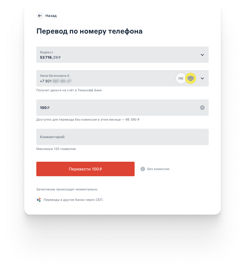Добавили переводы по СБП и сделали так, что при отправке денег было видно, сколько ещё можно перевести в этом месяце бесплатно.