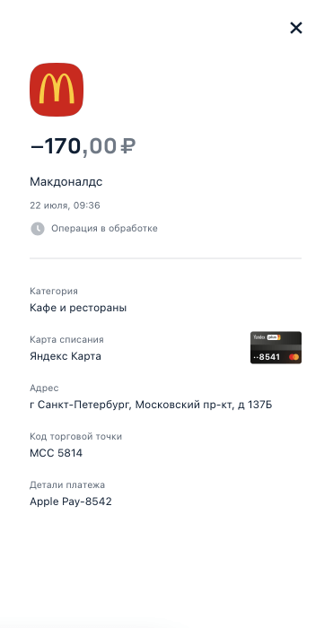 А ещё мы переделали историю операций — теперь там есть понятные названия, логотипы, адреса магазинов и кэшбэк за покупки.