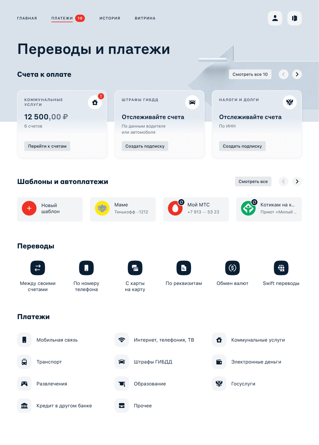 Полностью переделали все формы платежей и переводов и добавили то, чего не хватало.